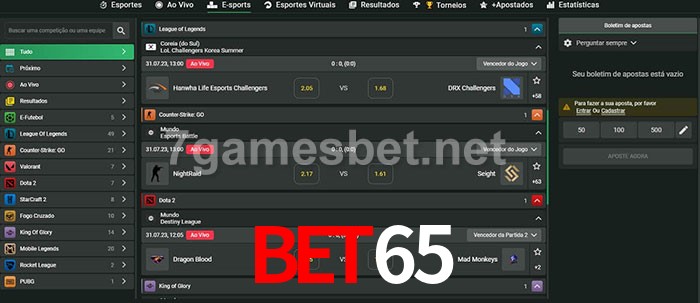 O Bet65 oferece uma grande seleção de opções de apostas em e-sports com probabilidades competitivas